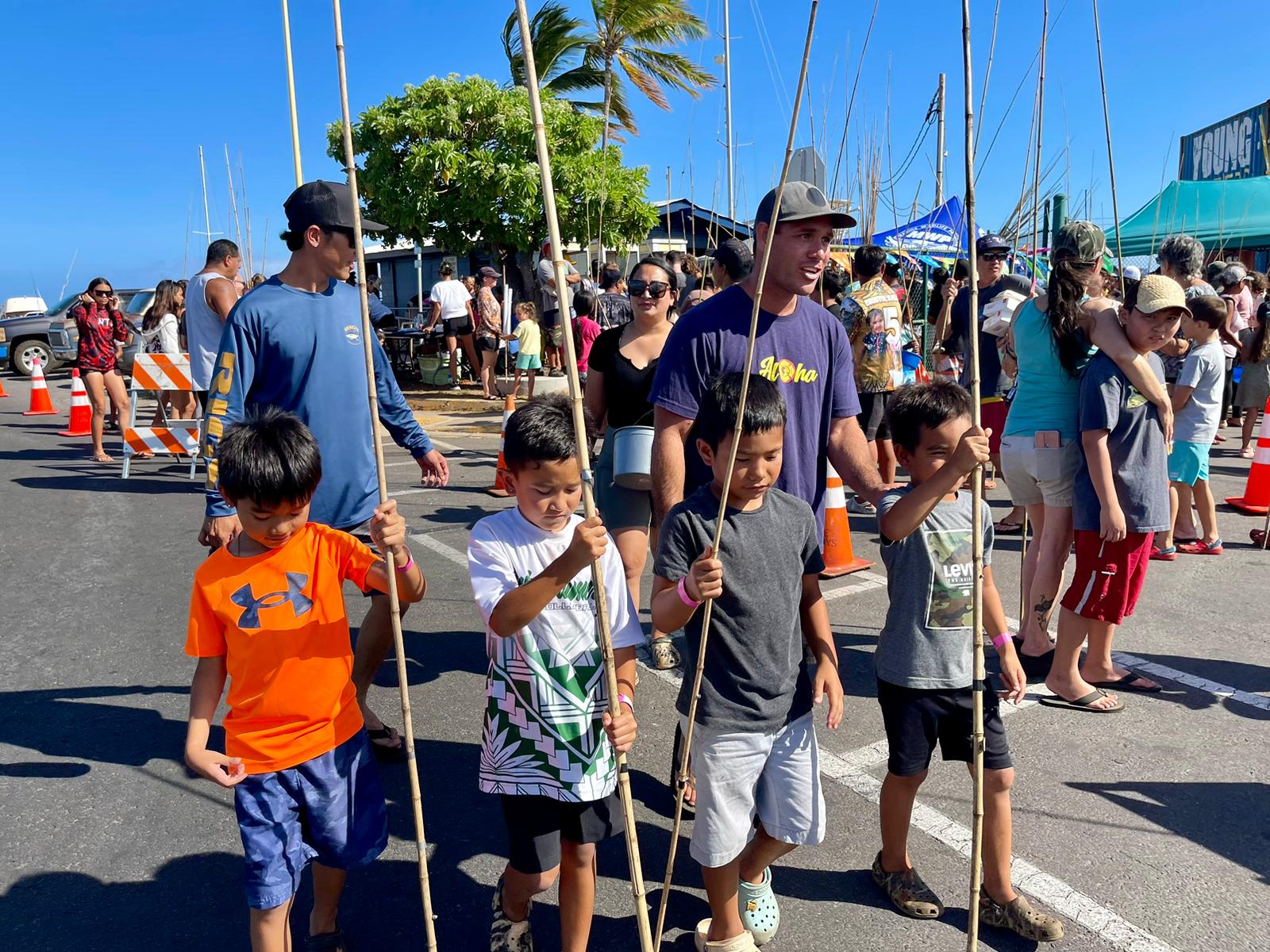 The high number of entries was unexpected by the organizers, who had to go up the mountains Saturday morning and cut another 75 bamboo poles for the tournament – the keiki are only allowed to use bamboo poles provided by the organization to keep it fair and even for everyone.