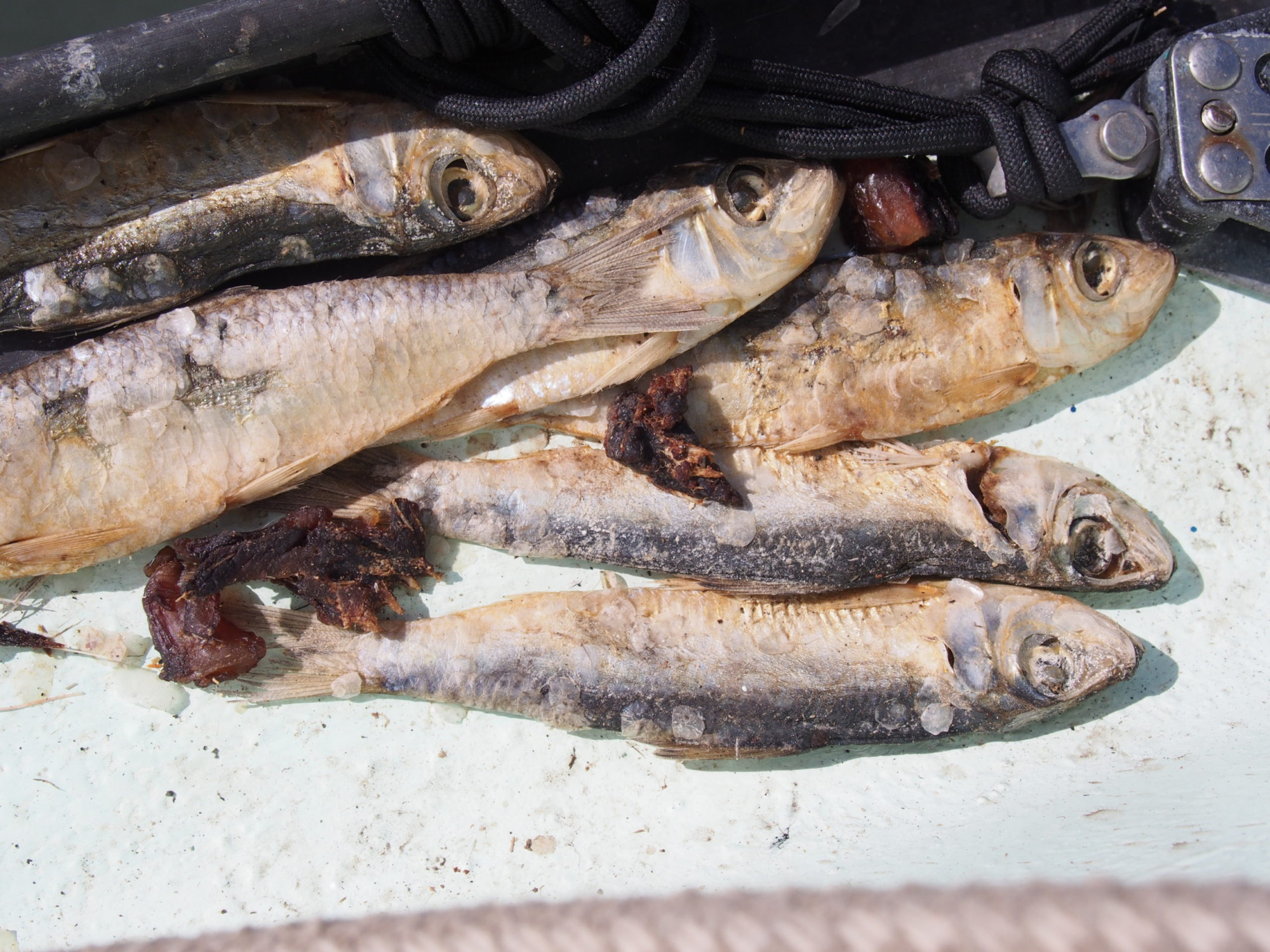 A few, small fish still lay on the hull Thursday morning. Those were to be his last resort meal, he said. He pulled a pot of spaghetti from the cabin.