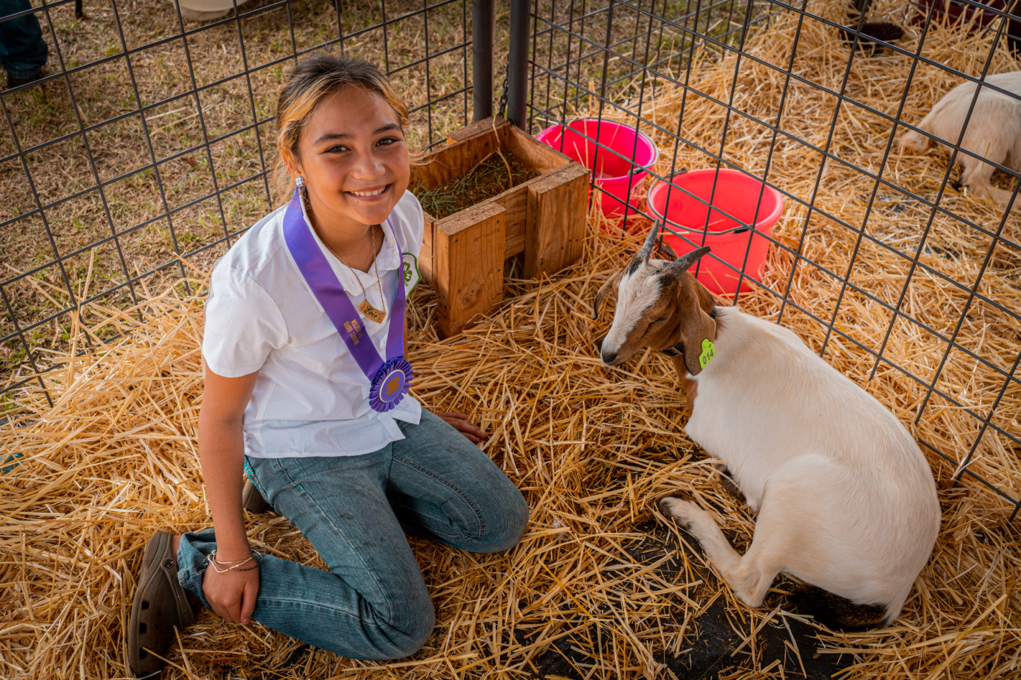 The 4-H club is divided between market and showmanship classes. The market animals are for children 9-to-13 years old who raise goats and swine; and children 14-to-17 years old who raise swine and steers. The younger children, 5-to-8 years old, participate in the Clover Bud project, which involves smaller animals only for showmanship.