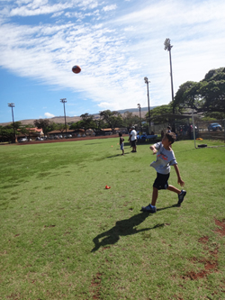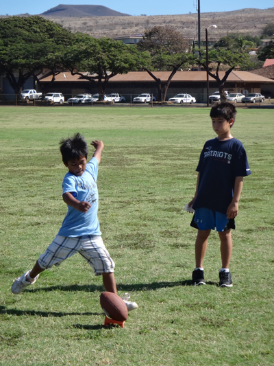 Footballs flew up and down Kaunakakai Ball Field Saturday morning as keiki ages 6 to 15 practiced their punts, passes and kicks. This is the second year Molokai has hosted the nationwide Punt, Pass and Kick (PPK) Competition, sponsored by the National Football League (NFL).
