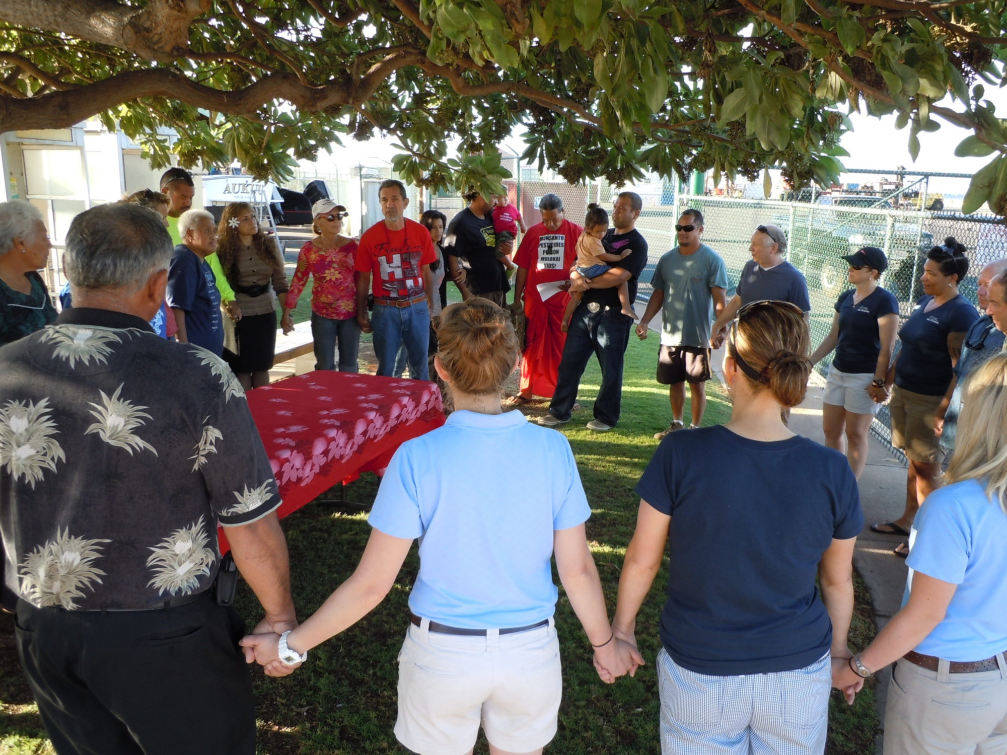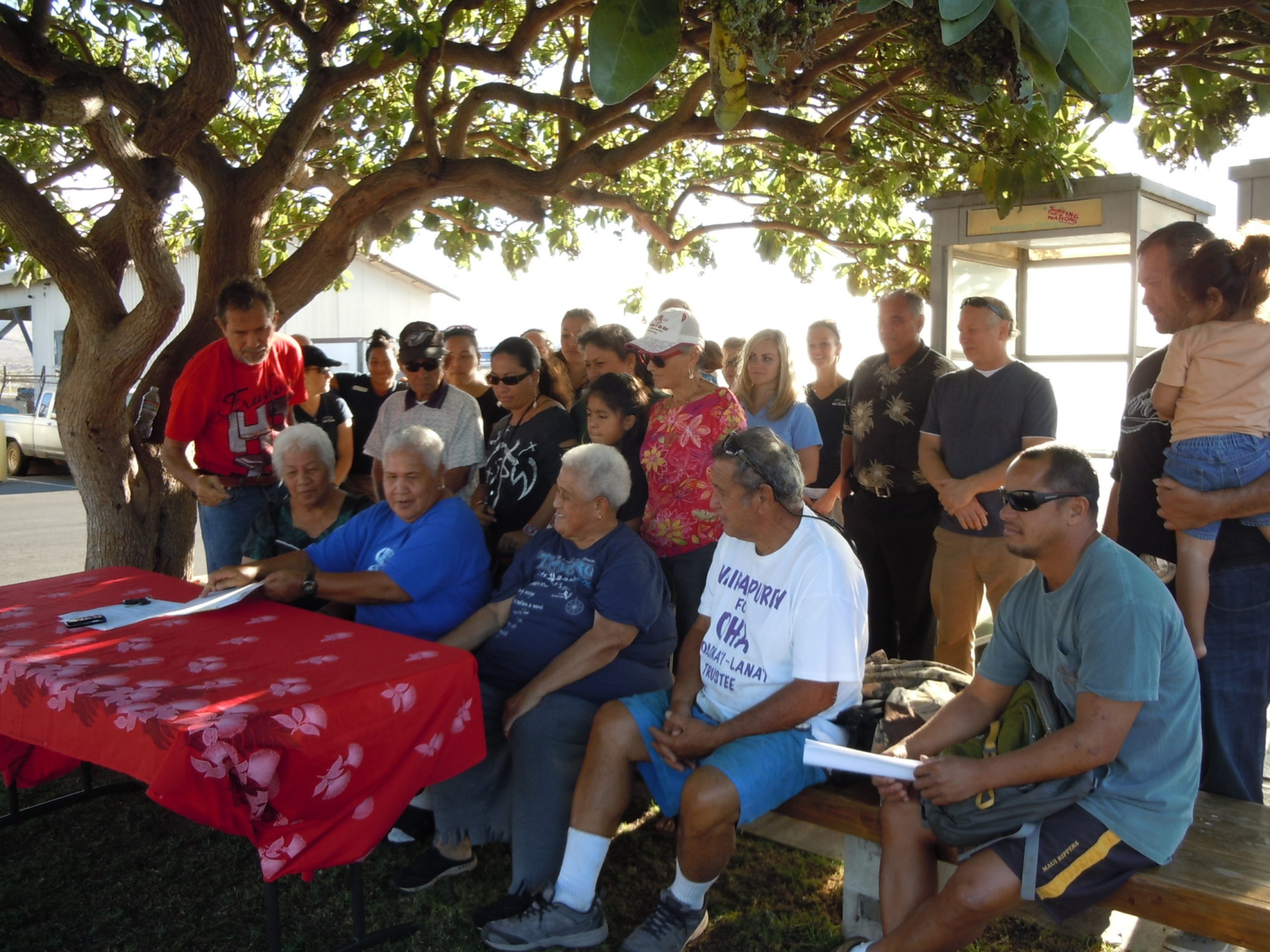 “I recognize so many faces today but [last time] we were on a line across from each other,” he said as he hugged kupuna and former protesters at the signing which was held under the tree at the wharf where protesters had gathered last year. “I hope all this turns into a really good thing for Molokai.”
