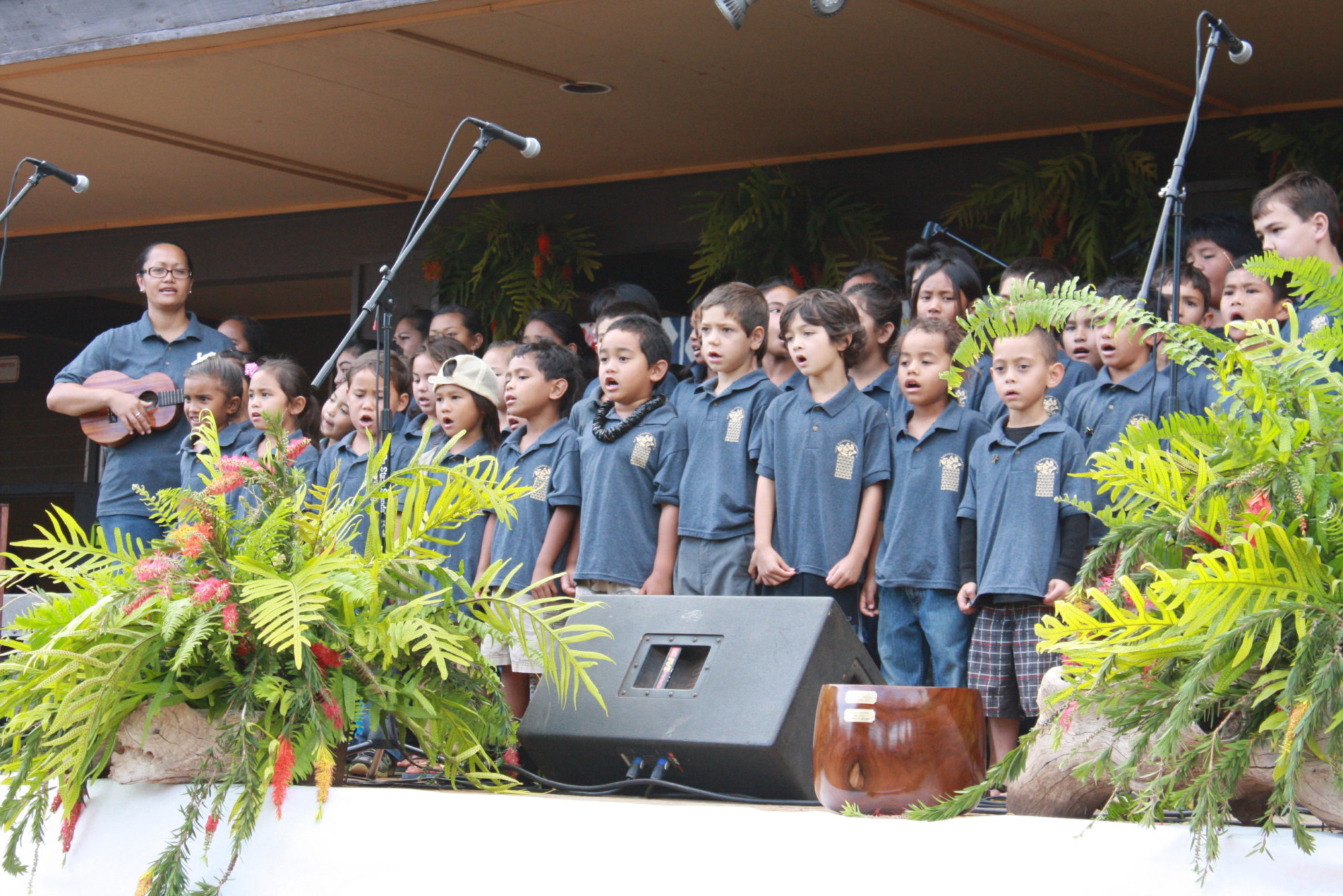 Kula Kaiapuni o Kualapu`u (pictured here), Kualapu`u Charter School’s Hawaiian Language immersion program, kicked off the night, which included music, prizes and food. TNC Molokai program manager Ed Misaki received the Malama Kuleana Honua Conservation Award for his 30 years of conservation through TNC, including Kamakou Preserve and the East Molokai Watershed Partnership.