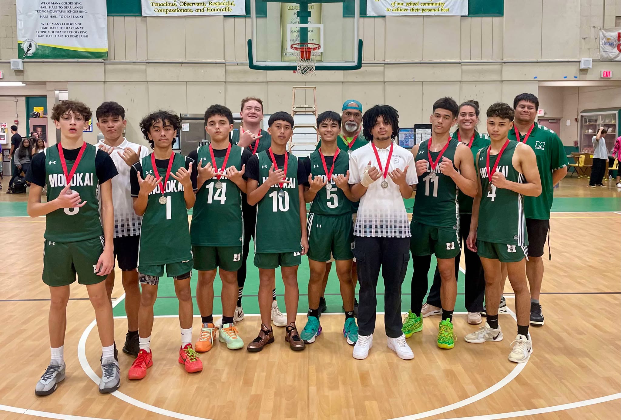 Molokai High School (MHS) boys basketball travelled to Lanai to compete in the Maui Interscholastic League DII tournament last week. In their first game, the Farmers prevailed against Maui Prep, beating them by a score of 65-56. Kaizen Torres-Umi Napoleon led the scoring with 28 points, with Tyshonn Harper following with 11. The Farmers next took on Seabury Hall in the finals, with Seabury taking the 82-38 win. The Farmers will continue their season at home on Saturday, Feb. 15, at 1 p.m. at the Barn against a to-be-determined opponent.