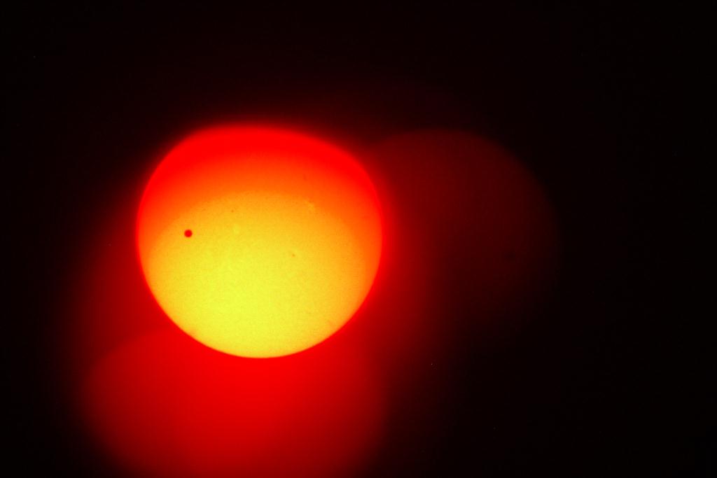 Around the world on June 5, especially in the Pacific region, viewers watched entranced through telescopes as one of the rarest planetary alignments took place– the transit of Venus across the Sun. On Molokai, retired astronomer Pat Jones set up his telescope in front of Kalele Bookstore in Kaunakakai while community members took turns catching glimpses of the historic sight. This image was captured by Kalele owner Teri Waros.