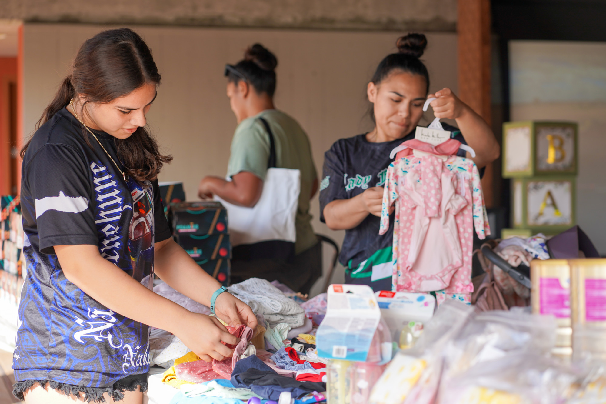 At the shower, the moms had a chance to hear about health services from Healthy Mothers Healthy Babies and Na Pu’uwai, play games and raffles, and pick up free baby formula, diapers and more.