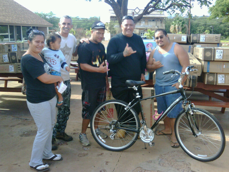 An anonymous donor from Maui donates about 40 brand new bikes every year, shipped over on the Maui Princess just days before Christmas. The bikes are distributed at Kaunakakai Baptist Church, and my job is to go out in the community in search of those who need a blessing. I try to find those who didn’t get the year before, just to make it fair.