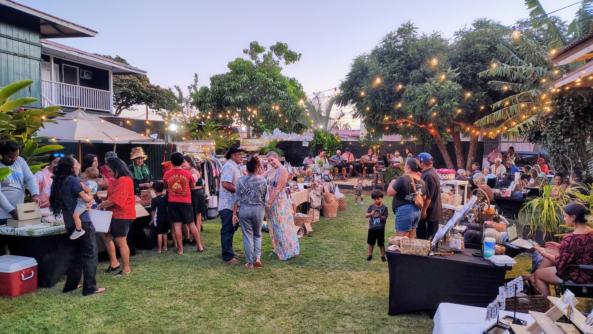 Canencia, who owns the cafe, said the Aloha Ahiahi Makeke is a combined effort between Hoʻala Cafe and The Store House deli. The market officially kicked off at 5 p.m. String lights criss-crossing above the market added to a warm feel and charming atmosphere of the event.