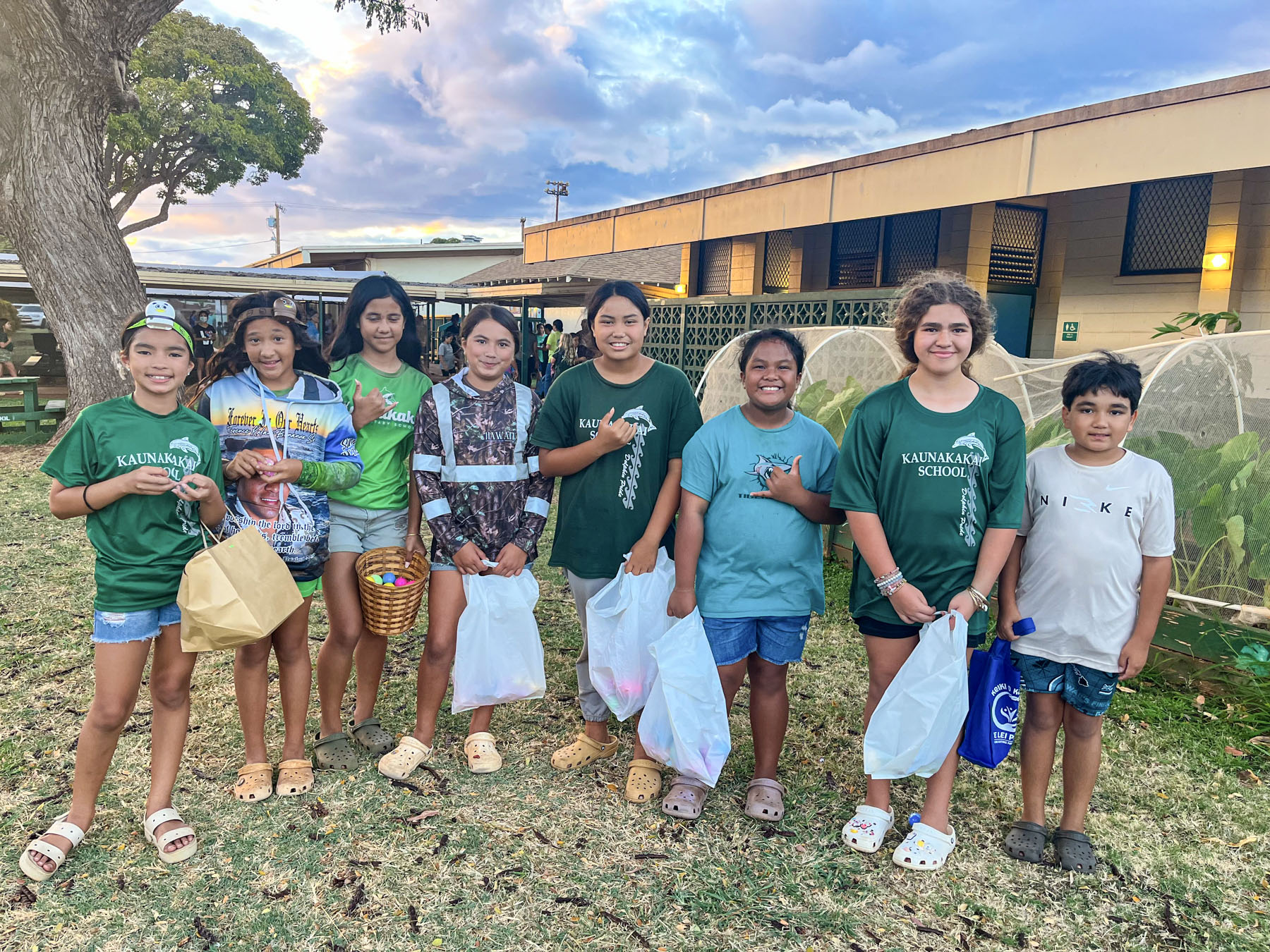 Kaunakakai Elementary students were treated to an evening of Easter eggs. 1500 plastic eggs were spread across the school’s campus, enticing students and their families to an entertaining activity with a positive twist.
