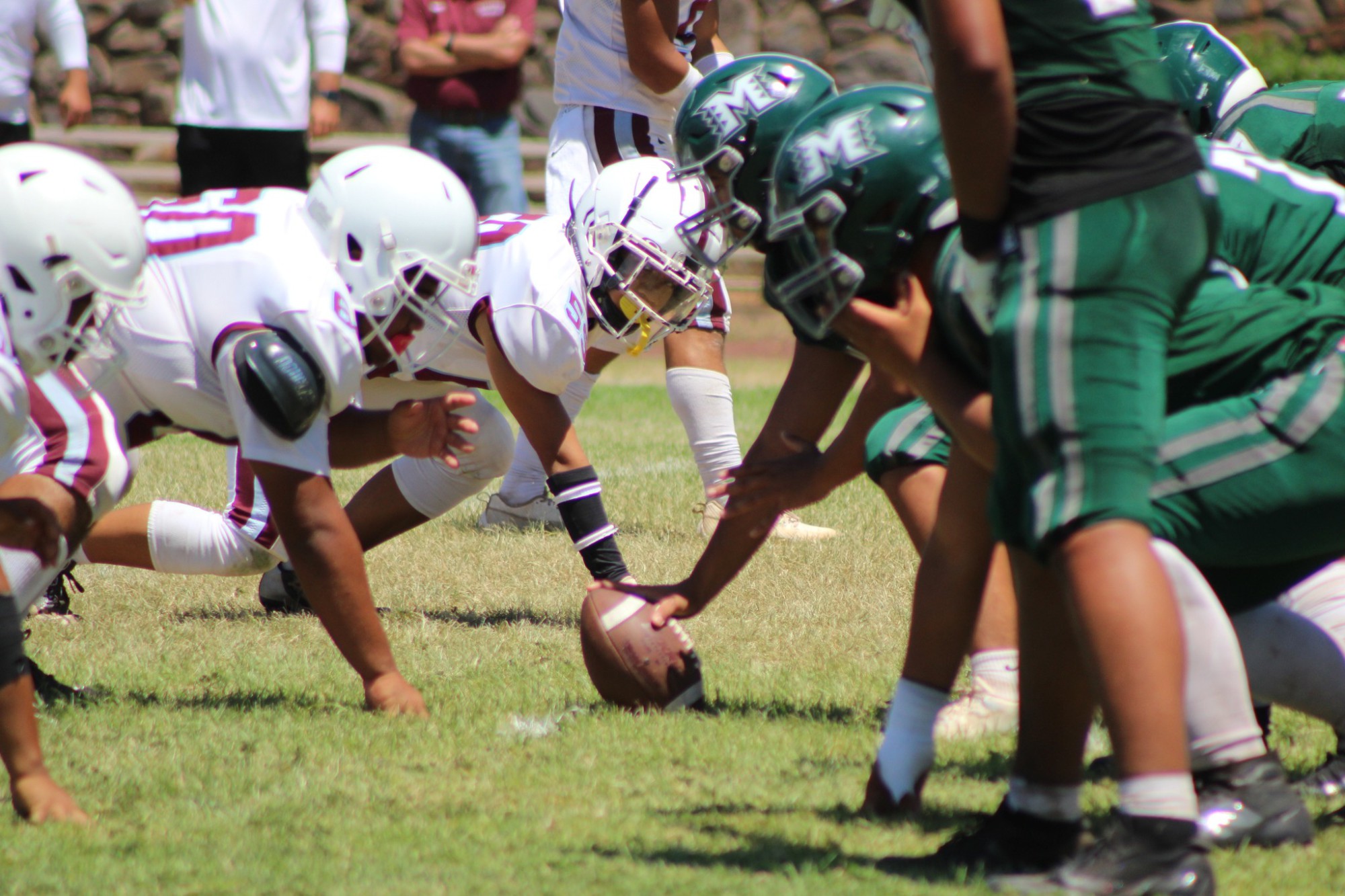 After more than 60 years, the Molokai High School (MHS) Farmers took the field in a home game for 11-man football. Under the mid-morning sky and supported by the MHS cheer team, parents and supporters, the Farmers competed against Baldwin High School in a much-anticipated home opener. Yielding 28 points in the first quarter, the Farmers never quite found their groove, finishing the game 63-0 in favor of Baldwin. Despite the loss, support continued to pour in for the Farmers. Having dominated the 8-man league since 2010, the Farmers have since stepped up to 11-man, competing against the best football schools in Maui County. They will take on Kamehameha Maui on Maui next week, before returning home to play King Kehaulike on Sept. 28.
