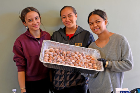A group of Molokai High School students brought food products made with coconut, highlighting the importance of this food source. They had malasadas, pani popo and curry, all of them made with coconut.