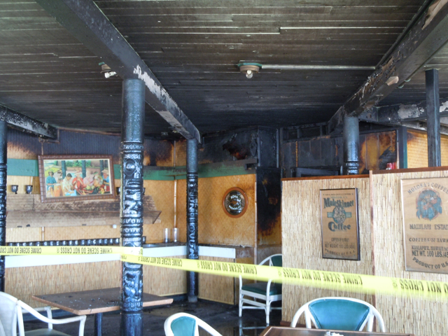 Firefighters responded to the fire just before 3:30 a.m., and found about 75 percent of the bottom floor of the two-story structure engulfed in flames, according to Maui Fire Services Chief Lee Mainaga. A Maui fire inspector said the fire’s cause is undetermined but concluded it was accidental. The inspector said it started in the storage room behind the kitchen, which was padlocked when the blaze broke out.