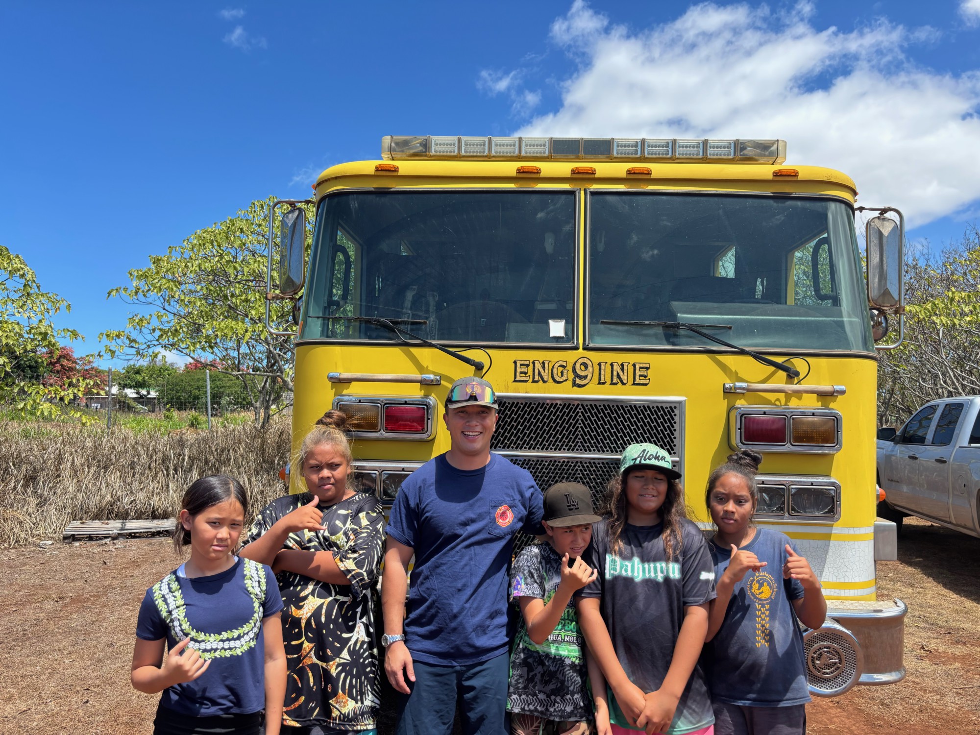 On Friday, Aug. 15, the kids had a holiday from school, so they met to bake cookies and then packed them up to take them to each of the fire departments on the island at Hoʻolehua, Kaunakakai and Pukoʻo. At each station, they met some of the firefighters, learned how they do their work and how they live while on duty.