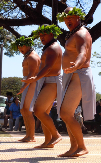 Dancers of Oahu-based Hula Halau Kukunaokala performed ancient hula centering around Molokai. The halau was founded in 1977 by the late Kumu Hula John Kaimikaua to carry on the hula traditions of this island. Ka Hula Piko was started by Kaimikaua and now organized by the halau and the Molokai community.