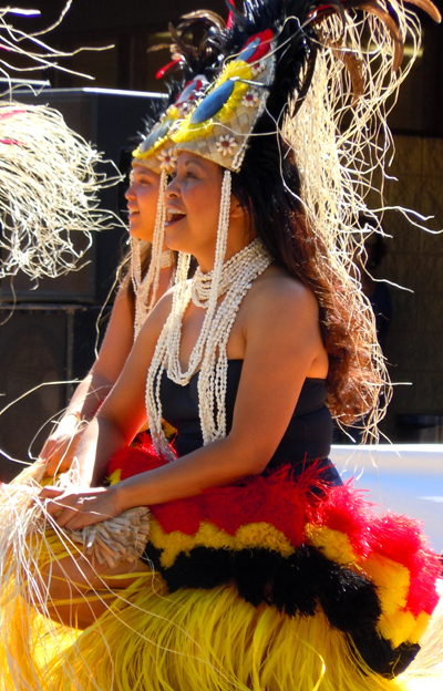 Members of Molokai-based world renowned Moana’s Halau celebrated colorful Tahitian dance traditions. Photo by Catherine Cluett