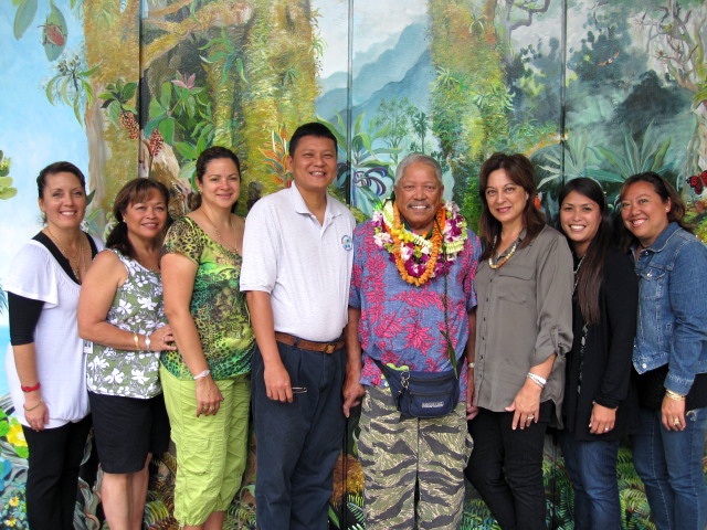 Ka ‘Ohana O Kalaupapa President Clarence “Boogie” Kahilihiwa surrounded by 5th grade teachers at Kamehameha Schools Kapalama campus in 2011. The ‘Ohana worked with the teachers and students to produce the play, “Ka ‘Ohana O Kalaupapa.” Photo courtesy of Mara Bacon Chang