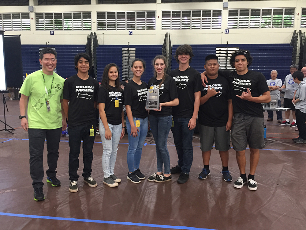 Three teams from Kualapu`u school competed: Team 1037A — Felix Kehano, Matthew McGuire, and Kamau Pali; Team 1037B — Alice Alvarez and Chevy Bush; and Team 1037C — Shazen Bush and Anthony Naia Starkey.