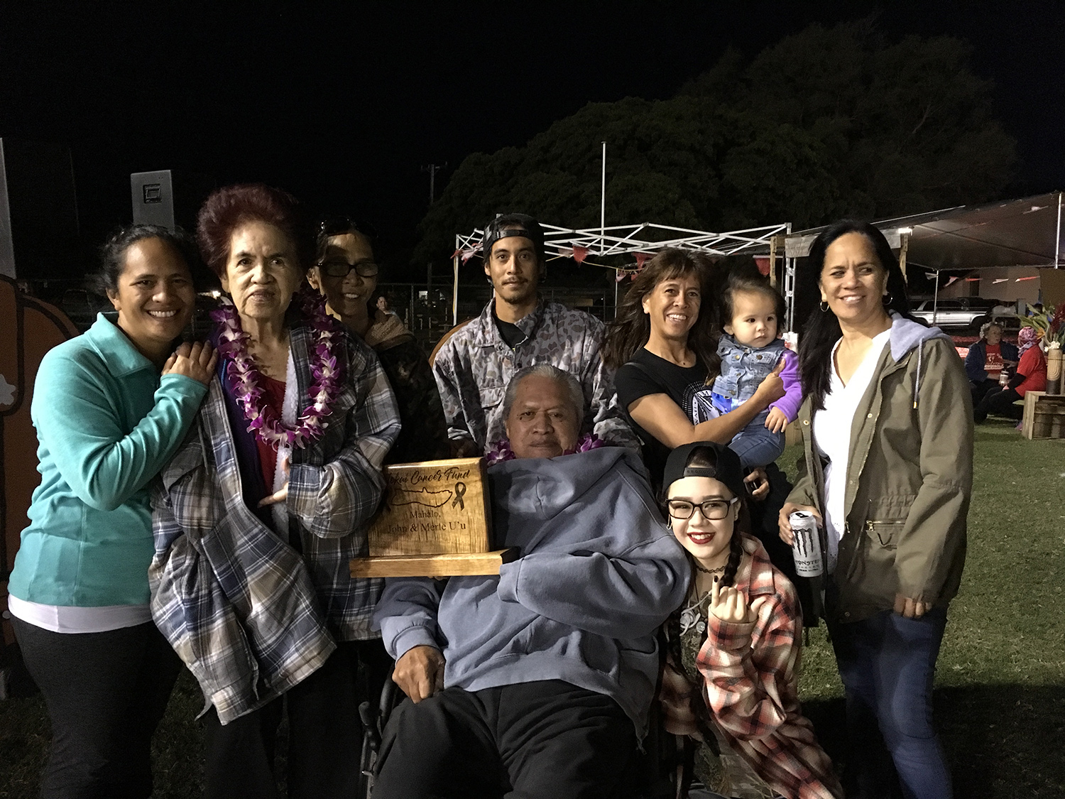The Molokai Cancer Fund Walk for Ohana committee also honored Merle and John U`u of Ho`olehua for their support of the Cancer Fund and their generosity to the community through providing a bus service, Molokai Transportation, to help Molokai youth get to school.