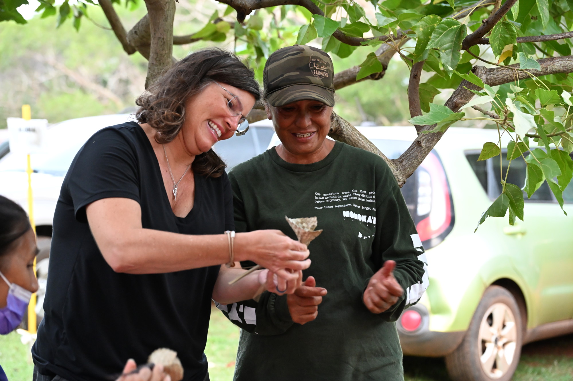 An animated older group of four visitors, David Brentzel, of Georgia, and Jerry Hittinger, Cherie Hittinger and Donna Kaelin, of Kentucky, come to Molokai often, each time spending a few weeks on the island. They found out about the workshop through MAC’s newsletter. The group was quite happy with the nice tropical weather.