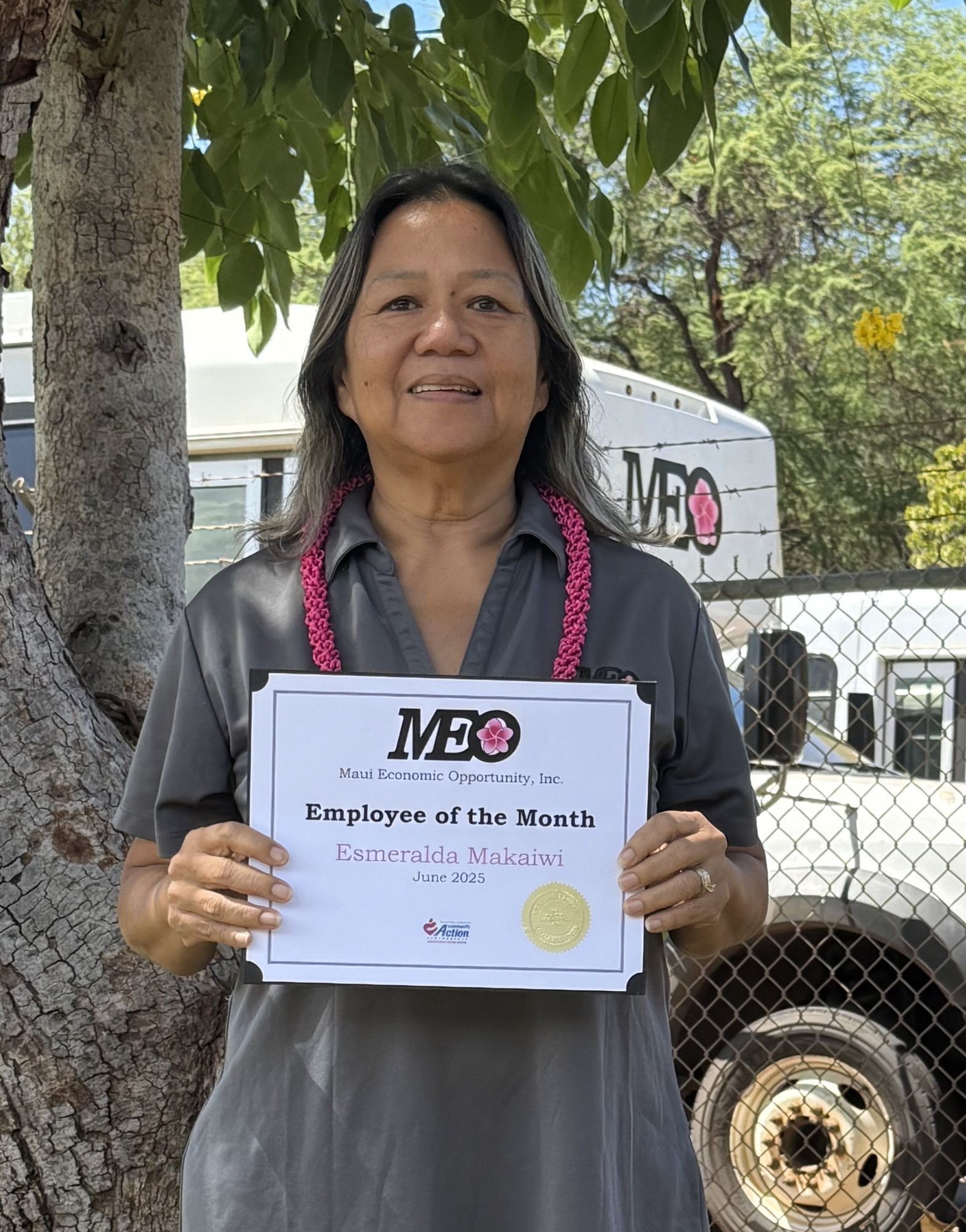 Molokai Driver Supervisor Esmeralda Amy Makaiwi, “a steady pillar of support” for the last 25 years, was named Maui Economic Opportunity Employee of the Month for June.