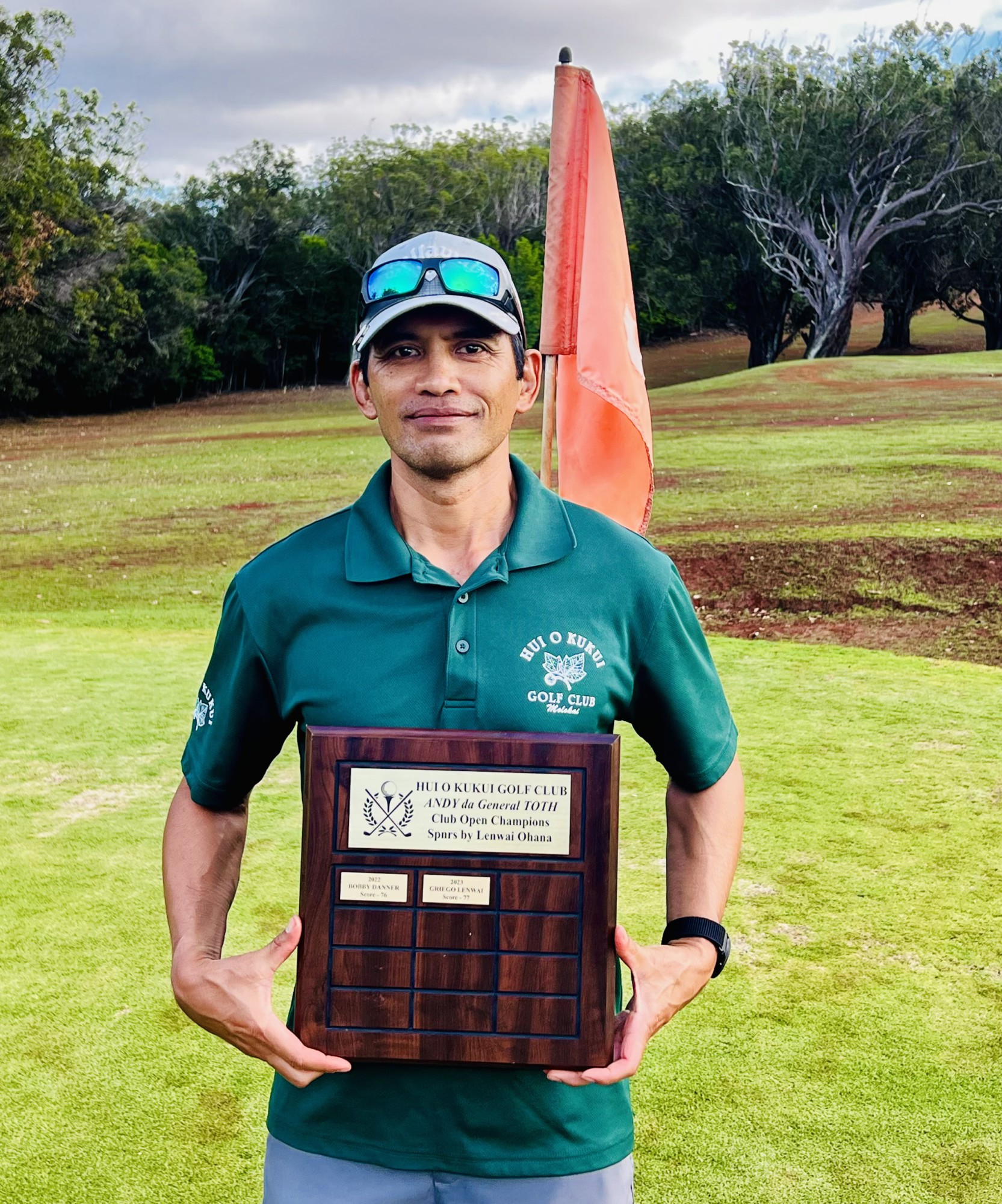 Raguindin, long time physical education teacher at Molokai High School and an all-around awesome person who is always positive, shot 37–39 for a gross total of 76. He will now get his name on the Andy “Da General” Toth plaque. Congratulations Poncie!