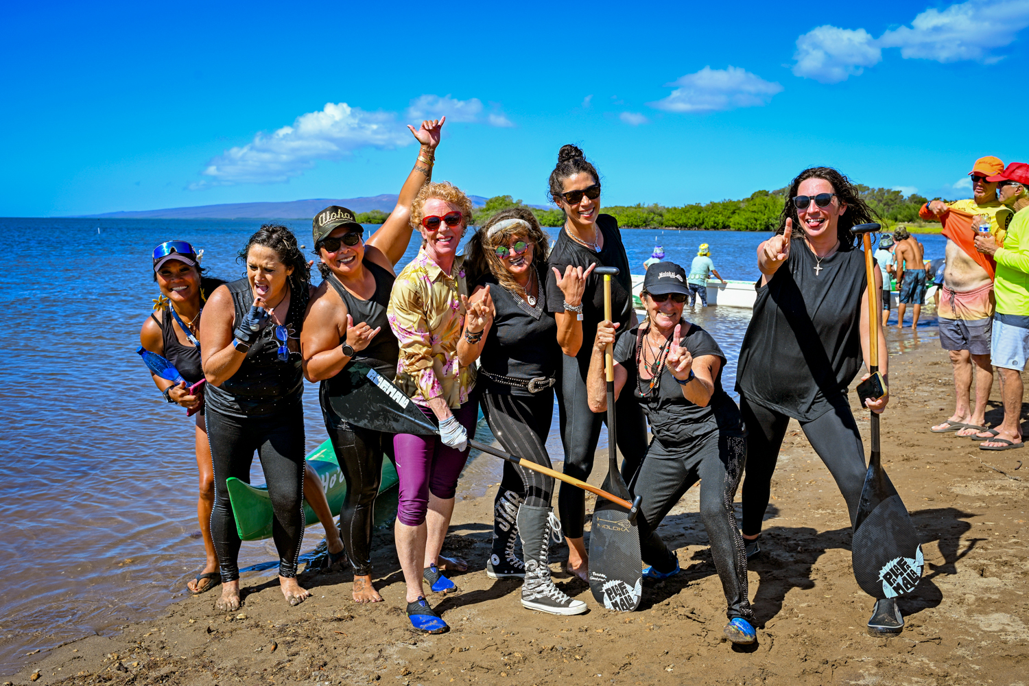 The Ozzy Osbourne Wahines, shown here, were the first female crew to arrive at the Molokai Master Blaster Race last Saturday. Photo by Léo Azambuja