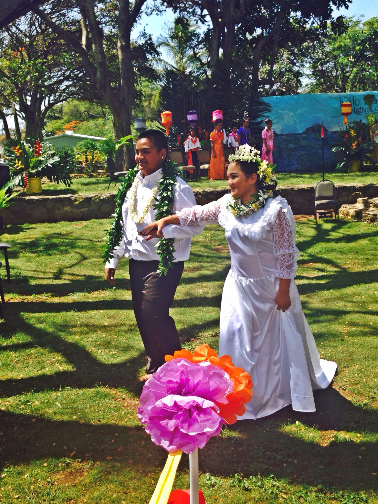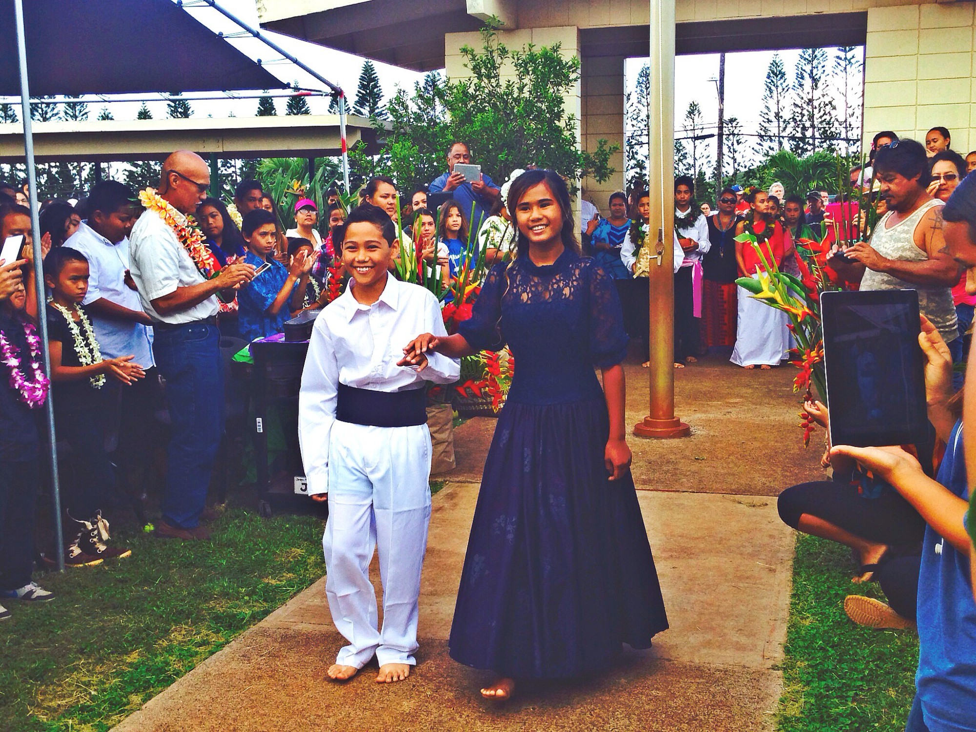 The Royal Court of Molokai Middle School prepares for their entrance into the ceremony held in the Barn, which featured live music with special, award-winning guest Napua Greig. Photo by Catherine Cluett.