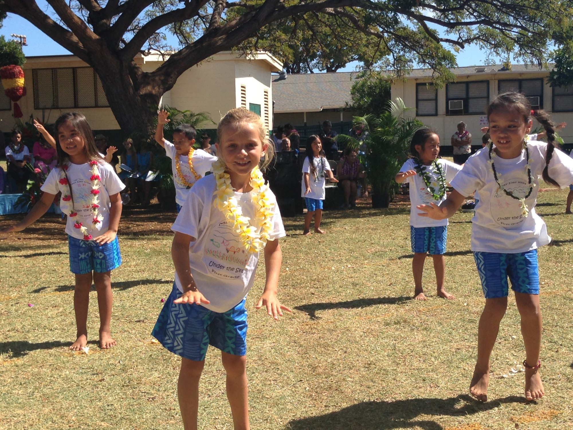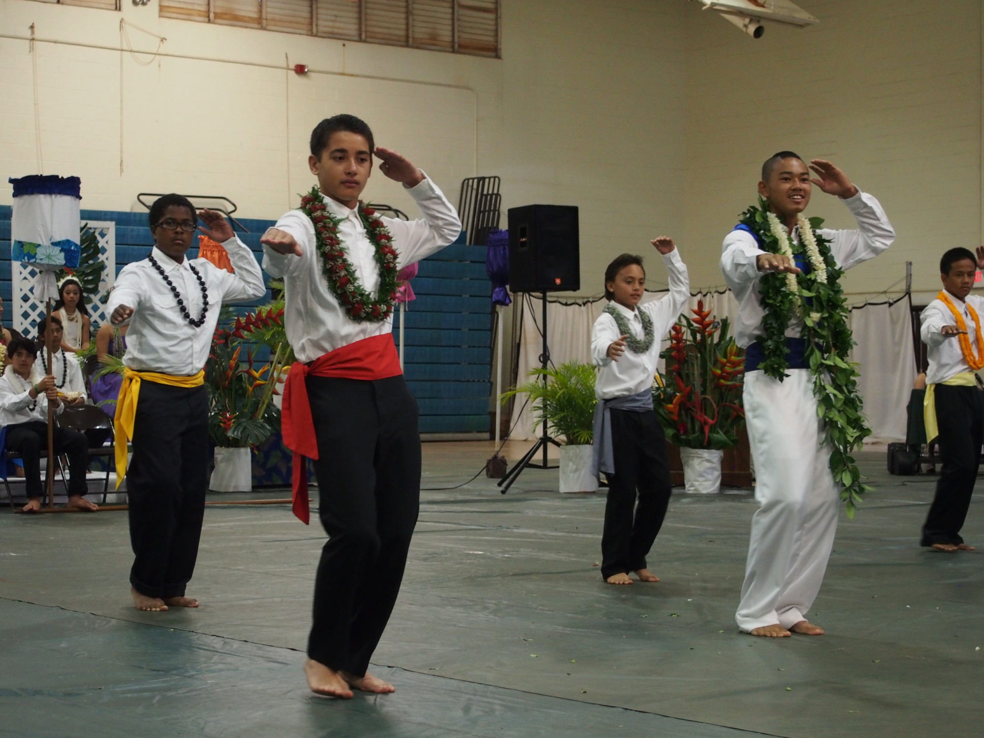 Kilohana Elementary students danced in celebration of the “kaloe kanu o ka `aina” or native of the land from generations back, in a colorful performance. Photo by Bianca Moragne.