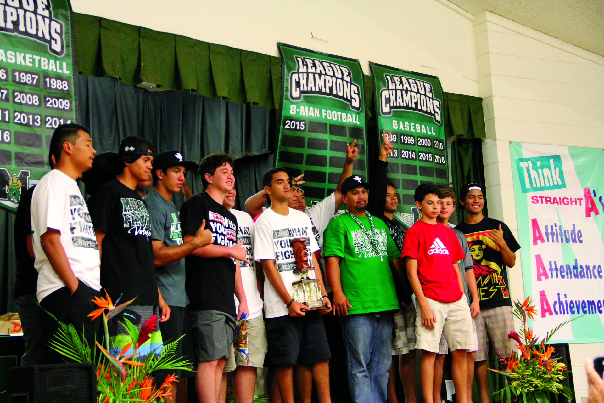 Two weeks ago, athletes from all sports in the fall, winter and spring categories were honored on stage at the Molokai High School Athletic Department’s annual banquet. Individual champions were also honored as were the Boys Volleyball runner up DII State Championship team, the MIL DII Champion Boys Football team and State Wrestling Champion Cendall Manley. Manley will have her picture placed in the MHS Hall of Fame in The Barn.