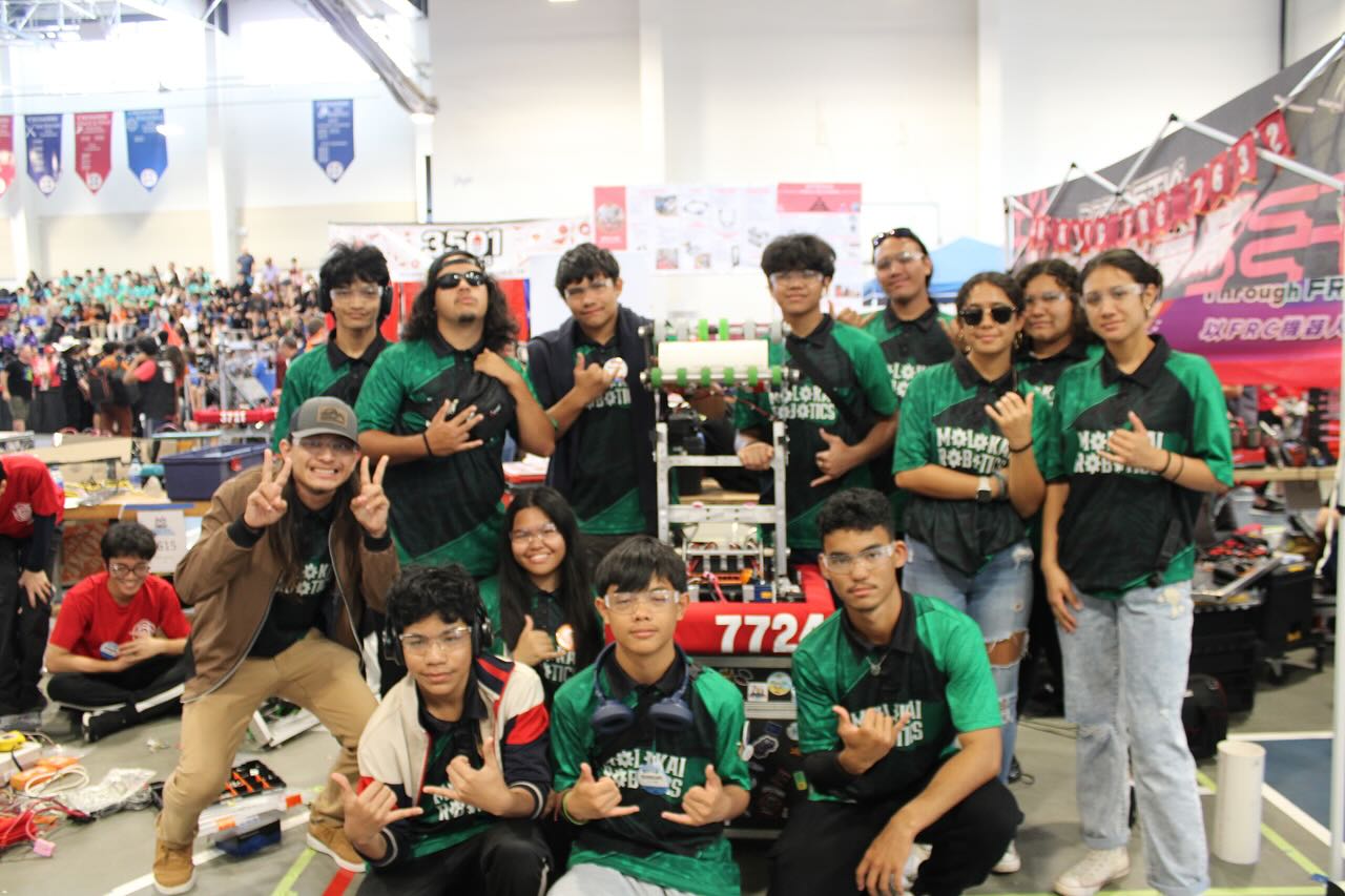 In March, Molokai High School (MHS)’s storied robotics program received international recognition, winning the Vex Robotics Marketing Challenge. The global award qualified the MHS team for the world robotics championships in Dallas, Texas this May.