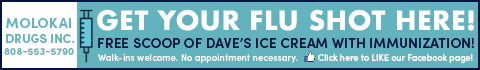 - Ho’olehua: Thursday, Sept. 29 at Molokai High School Student Parking Lot from 2 to 5 p.m. with free snacks.