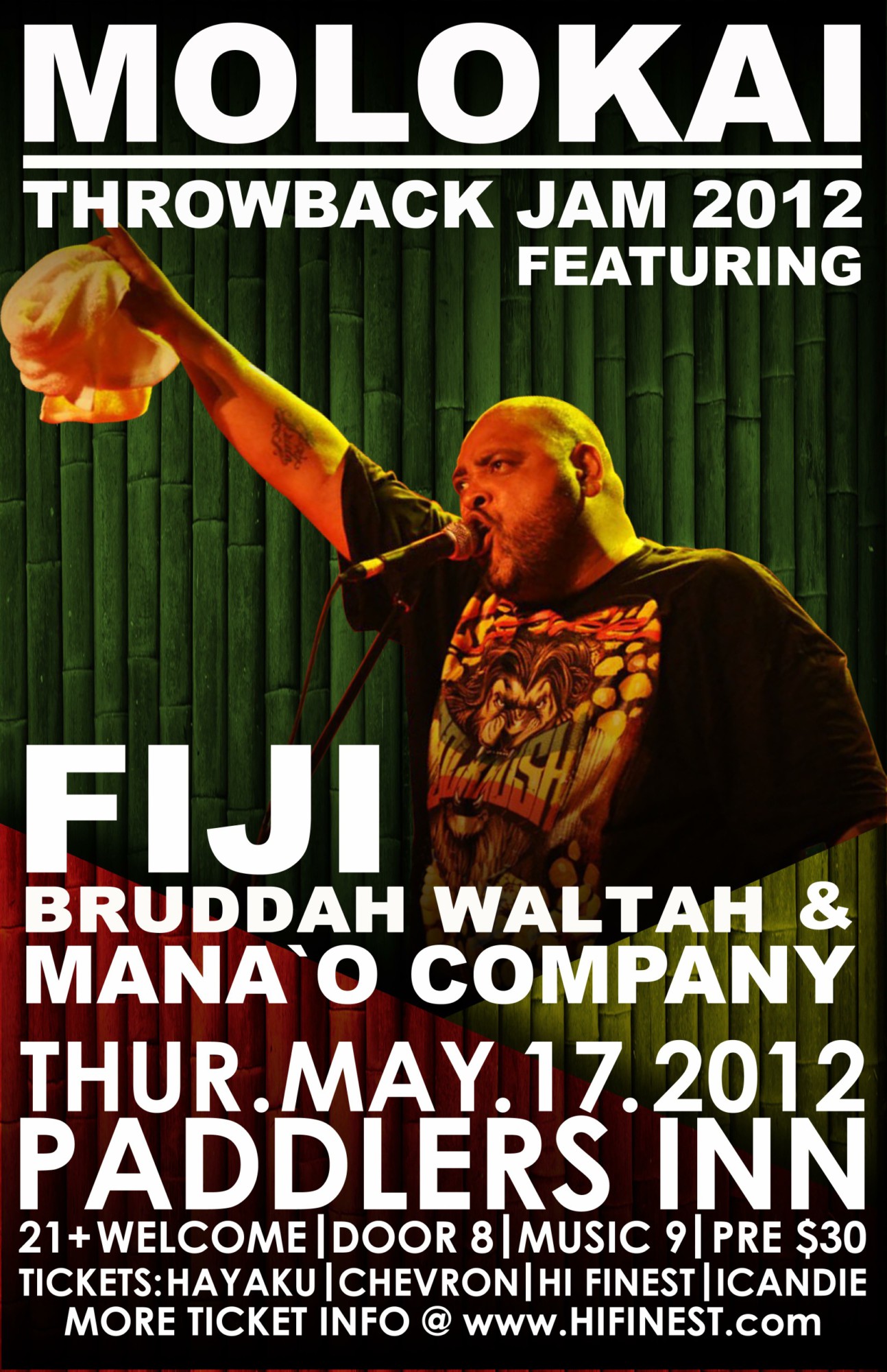 Molokai, I hope you’re ready for the biggest and most anticipated show to ever hit the Friendly Isle. This Thursday, HI Finest Clothing presents the Molokai Throwback Jam 2012 Featuring Fiji, The Mana’o Company and Bruddah Waltah. Molokai has seen some pretty big shows over the years, but nothing quite like this one. It’s been years since these local music pioneers blessed our island with their music, and they are all going to be performing together on one stage in one night.