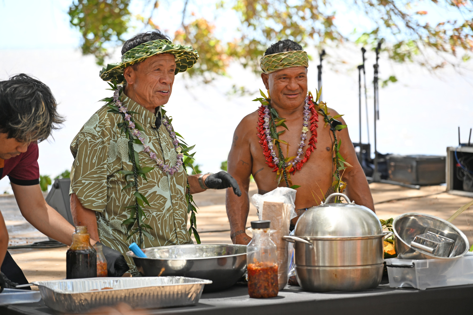 Renowned chef, restaurateur and TV celebrity Sam Choy, widely known as the “Godfather of Poke,” brought his whimsical style, partnering with Samoan cultural expert, artist and entertainer Kap Teʻo-Tafiti to keep the crowd entertained — and well fed, of course, with a couple different culinary creations with ʻulu.