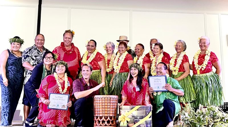 Molokai’s kupuna competed in five divisions of the 2024 hula contest. They placed in every division: third place in the men’s and women’s group, second in the women’s solo, and first in the mixed group and men’s solo. For winning the highest overall score, Kumu Raquel was presented with a valuable Pahu Drum.