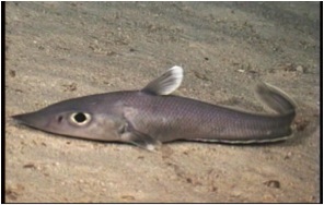 De Leo and his colleagues from the School of Ocean and Earth Science and Technology at UH Manoa used manned submersibles operated by the Hawaii Undersea Research Laboratory to take video in two submarine canyons off Molokai at depths ranging from 350 to 1,050 meters, or about 1,000 to 3,000 feet. This was among the first studies to quantitatively survey fish deeper than about 350 meters around Hawaii, gathering more than 13 hours of video altogether. Among the most abundant species De Leo and his team found were the so-called “rattail” fish (family Macrouridae) and the “eel-like” fish (synaphobranchids and halosaurs).