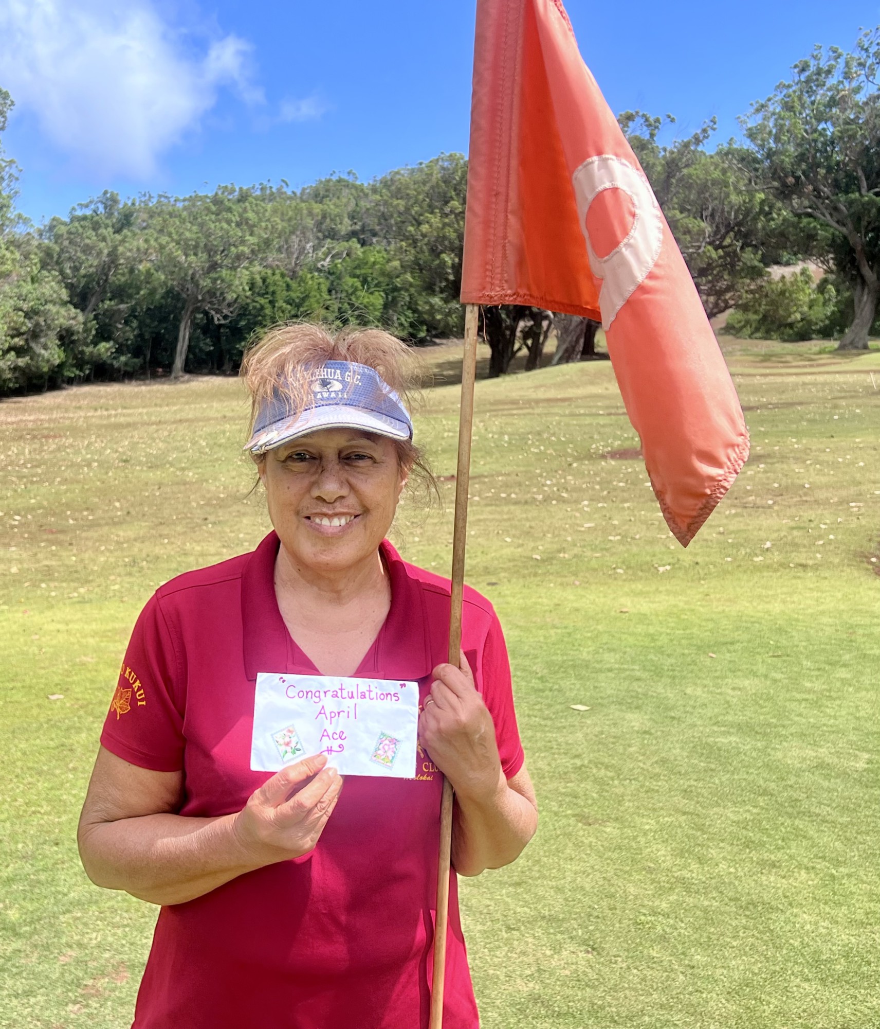 Henrietta Helm is the April Golf Ace for the Hui O Kukui Golf Club. Helm, a retired MPD Dispatch supervisor and a golf enthusiast extraordinaire, shot 42-45 for a gross total of 87. With her 22 handicap, her 65 net got her the victory. Congratulations Etta!