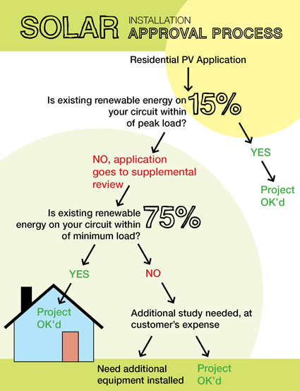 During the supplemental review, one of the areas looked at is whether or not the circuit has reached a minimum of 75 percent renewable energy. If it hasn’t, there is a good chance the application will be approved. If the area has reached that value, a further study would be required, at the customer’s expense. McNeff said residential PV system studies average around $3,000.