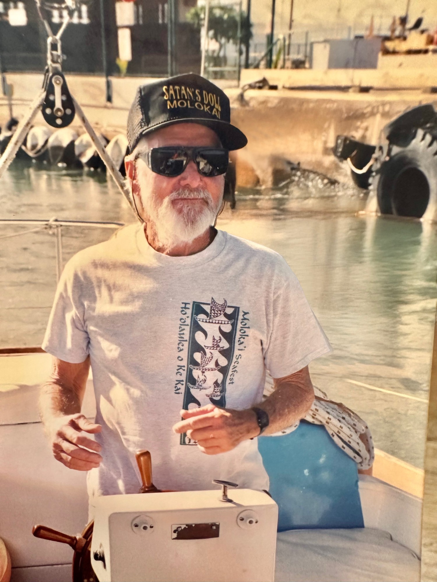 This love of sailing brought him to the Hawaiian Islands, where he met Doris, the love of his life, in Lahaina. They married on April 28, 1977, beginning a remarkable journey together. Aboard their vessel, Satan’s Doll, they sailed around the world with their faithful dogs at their side. During these voyages, they formed lasting friendships and collected countless stories from across the globe.