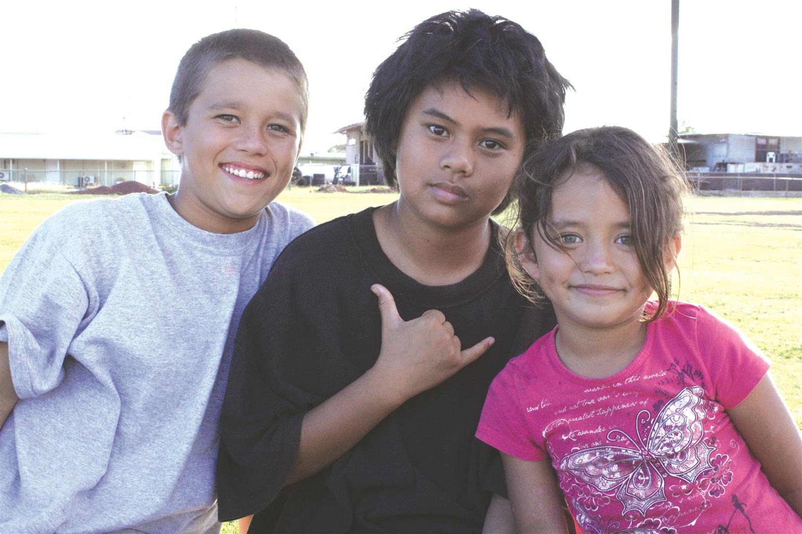 Ikaia Felsinger, 11, Ikaika Bacoy, 12, and Kaohu Felsinger sell watermelons at the Grassroots Benefit Concert. Photo by Emily Sumners