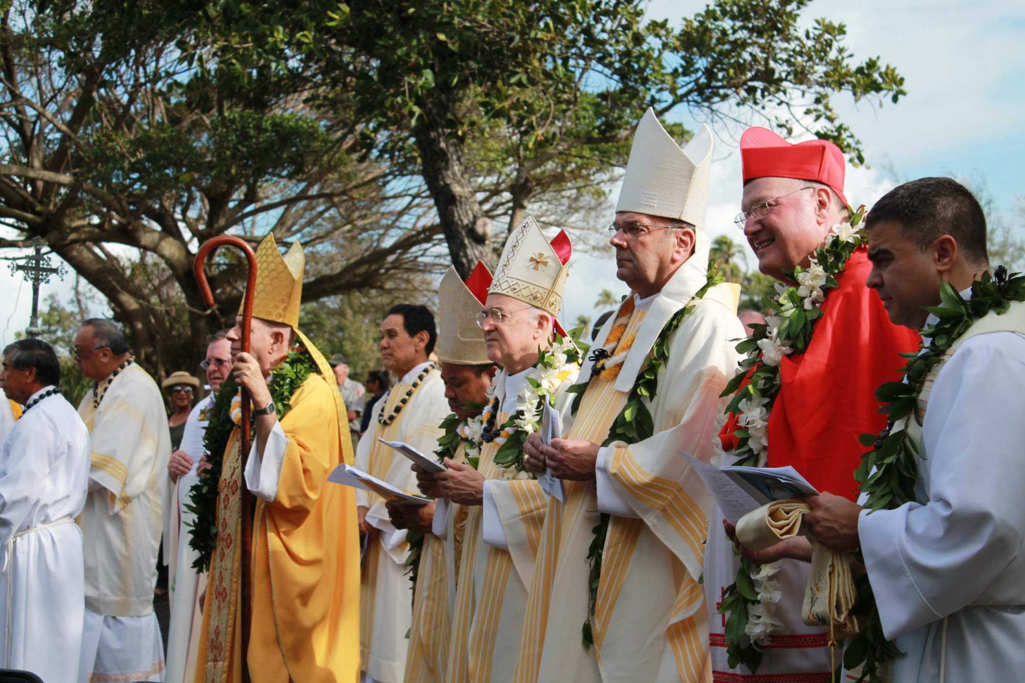 After a week of rain and wind, last Saturday’s sunny dawn was an auspicious start to a special day in Kalaupapa. Hundreds of friends and dignitaries from across the country, as well as community members, gathered to celebrate the sainthood of St. Marianne Cope. While festivities have been held in her honor around the world since her canonization in October, this event brought the celebration home to the place St. Marianne served exiled Hansen’s disease patients for 30 years.