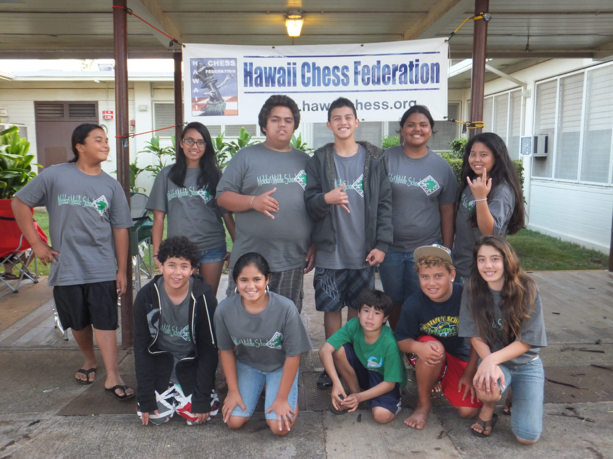 On Saturday, March 31, a team of 10 students from Molokai Middle School and three elementary school students participated in the 2012 Hawaii State Scholastic Chess Tournament on Oahu. They joined 134 students from 10 other public and private schools, Kindergarten through grade 12. Molokai Middle School placed fourth in the middle school division. The team held third place after four rounds but missed winning the bronze medal in the fifth and final round. Christina Nakihei-Rubin, who won her first three games, ended the tournament ranked ninth in the division.