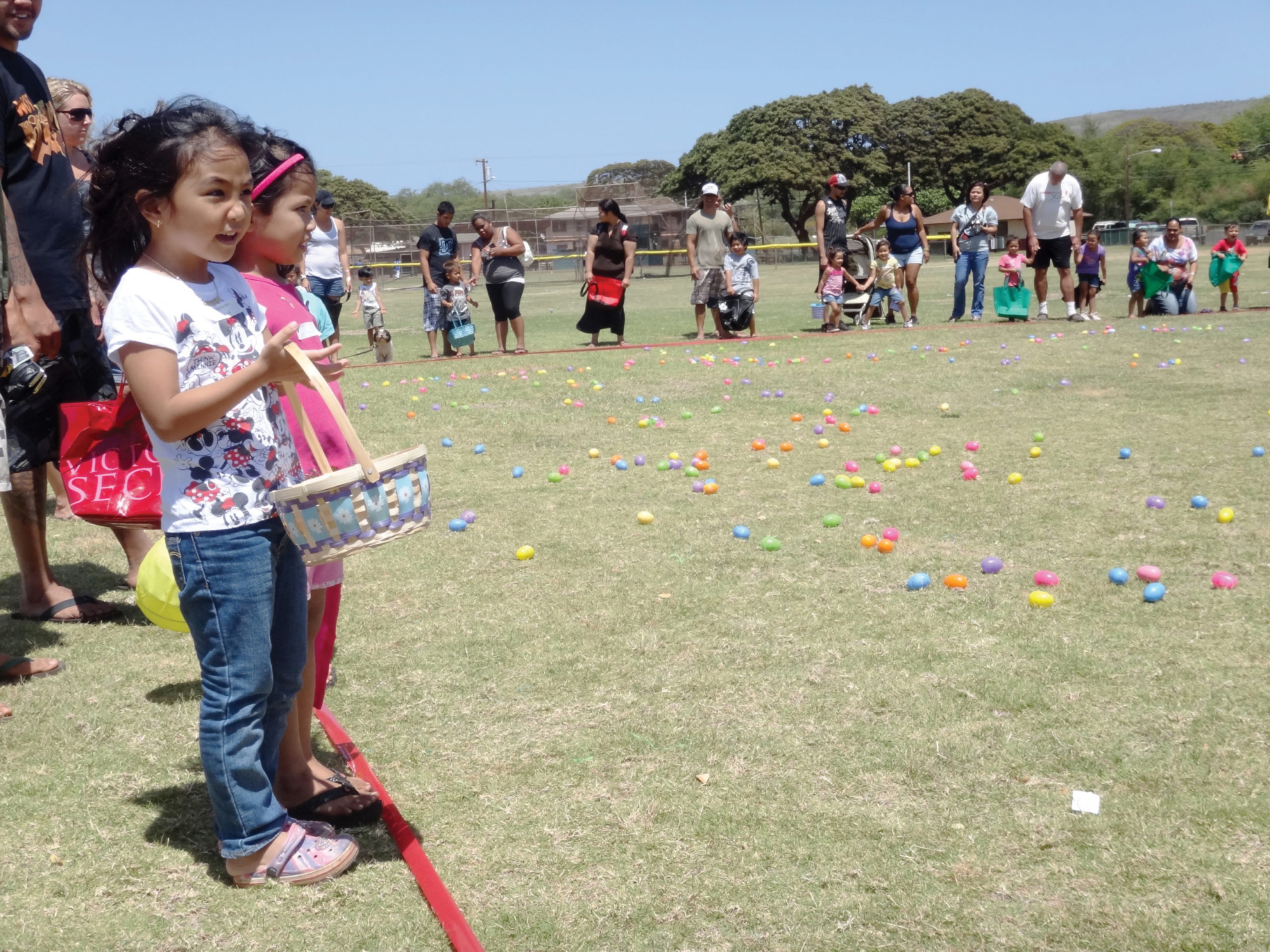 Molokai keiki participated in fun games, learned the story of Easter, and hunted for eggs at Hawaii’s biggest Easter Egg hunt, hosted by King’s Cathedral at Kaunakakai Ball Field on Saturday. It was a free event for young and old, with thousands of prize filled eggs for the finding.