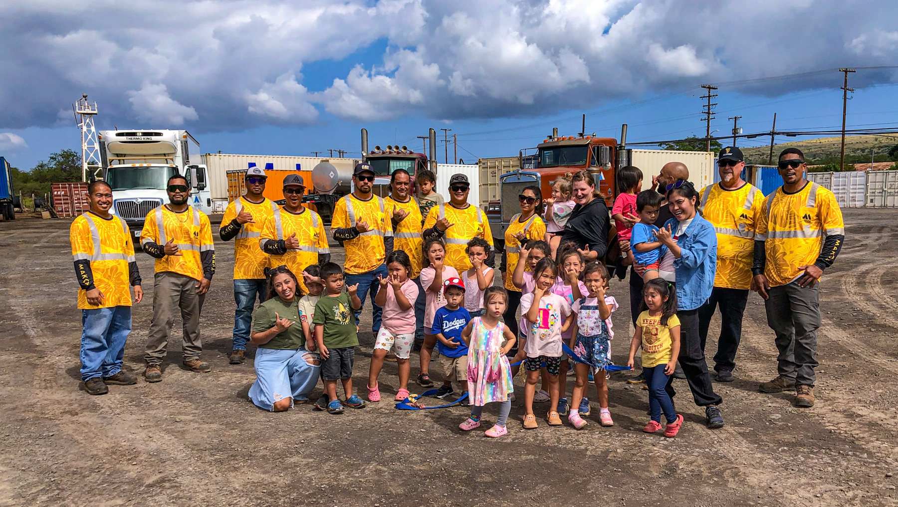 On March 28, Makoa Trucking invited Na Kamali’i Hoaloha preschool to the inaugural Touch-a-Truck event at the Makoa baseyard near the Kaunakakai Wharf. Students in the class got to meet with Makoa truck drivers, beep the horns and check out a variety of equipment from refrigerated containers to flatbeds to forklifts.