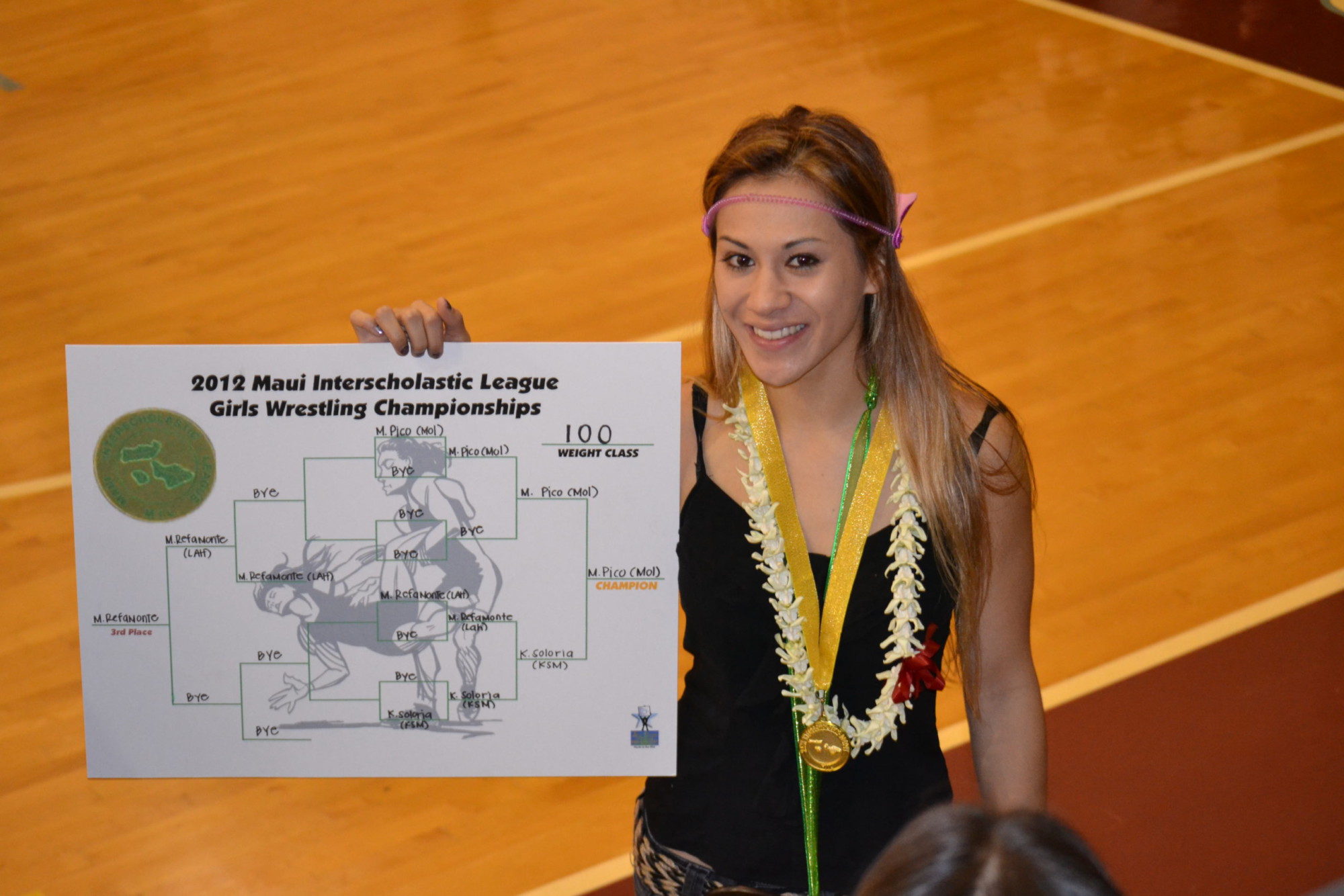Mikayla Pico, The Maui News MIL Girls Wrestler of the Year, pictured here at the MIL Championships in Feb. 2012, after winning her third straight MIL title. Photo courtesy Mikayla Pico.