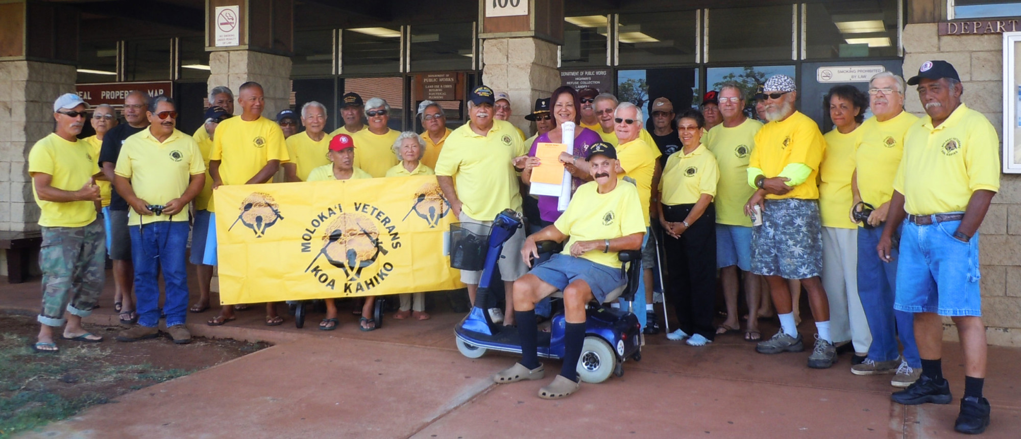 The fight for the 3,000-square-foot building began in 2006. The Molokai Planning Commission finally granted a Special Management Area permit to veterans in July 2009 after zoning complications and building plan changes delayed the process for more than three years. Several months later, Molokai Veterans Caring for Veterans filed for a building permit from Maui County. In July of the next year, having still not received the building permit, about 15 fed-up members of the 300-member organization traveled to Maui to protest the delays, attempting to negotiate with county officials. The county cited concerns over sufficient water pressure at the building site for fire protection.