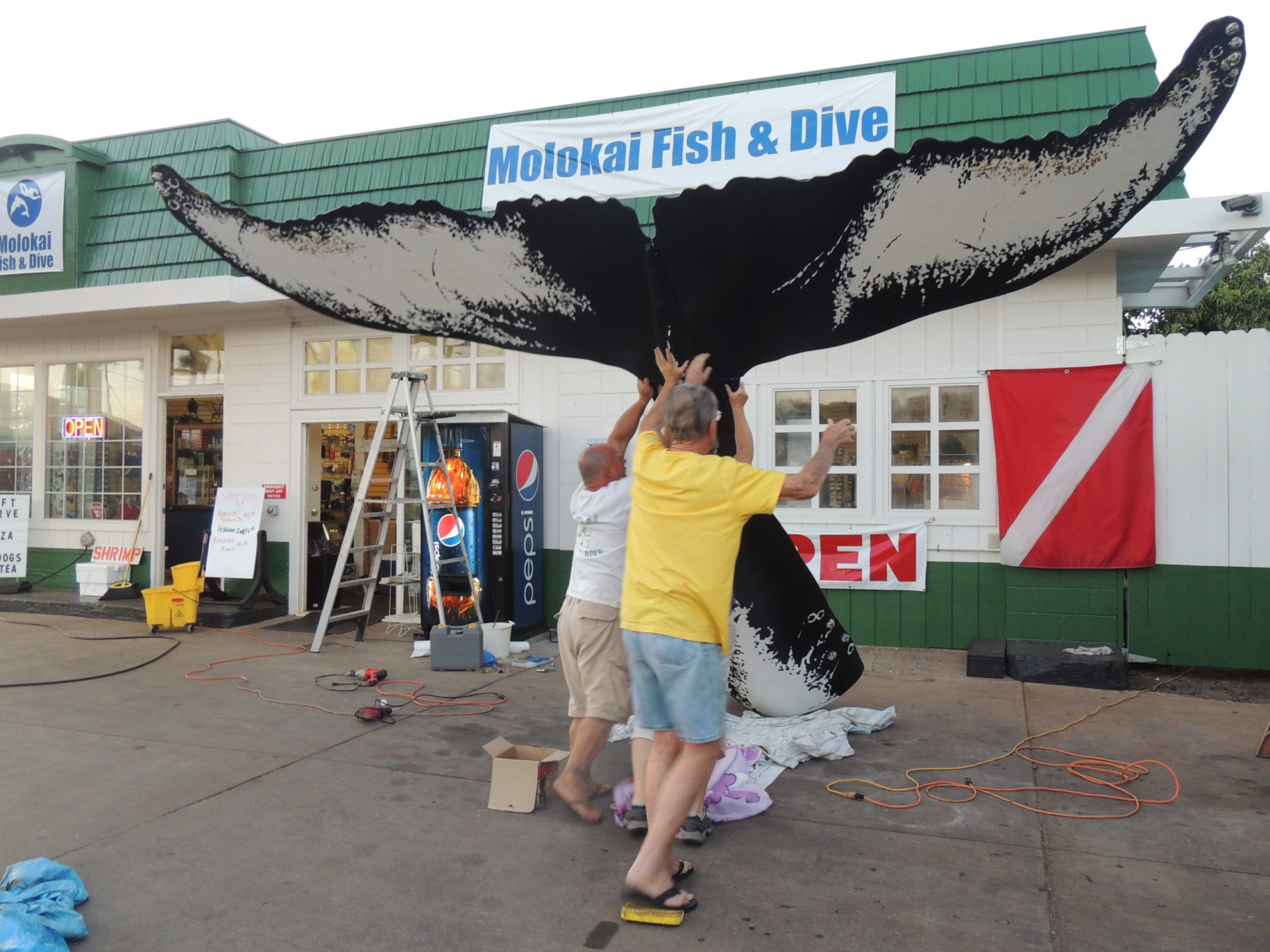 A new, life-sized replica of a humpback whale tail at Molokai Fish and Dive is making a splash with local elementary school students. Last Tuesday, the ocean tour and gas business hosted a much younger crowd than usual at their shop. Preschoolers from Kaunakakai Elementary School stopped by to admire the work of art and learn more about the majestic creatures that live just off shore.