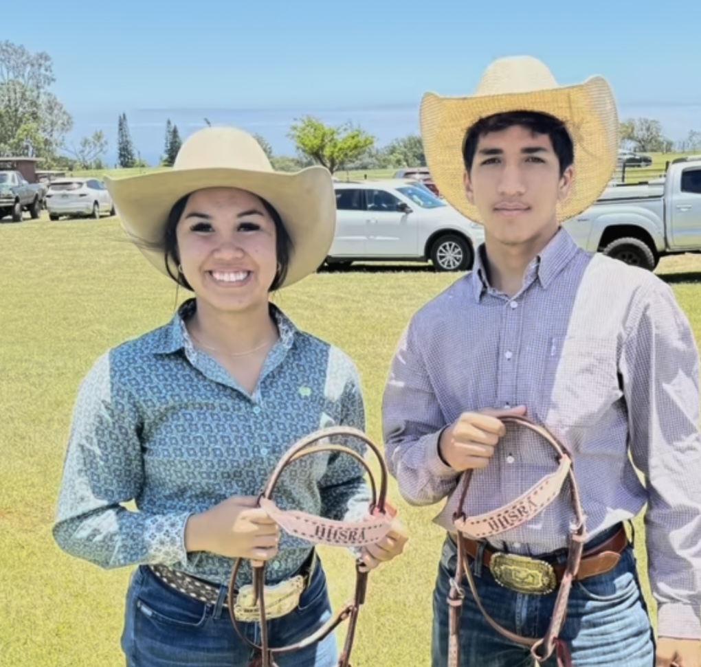 Cousins Bailey Sproat and Buzzy Sproat-Augustiro, both Molokai High School juniors, qualified last weekend for the National High School Rodeo Finals after a strong performance at the state finals. The duo placed third in the team roping event, earning a spot in the upcoming national tournament.